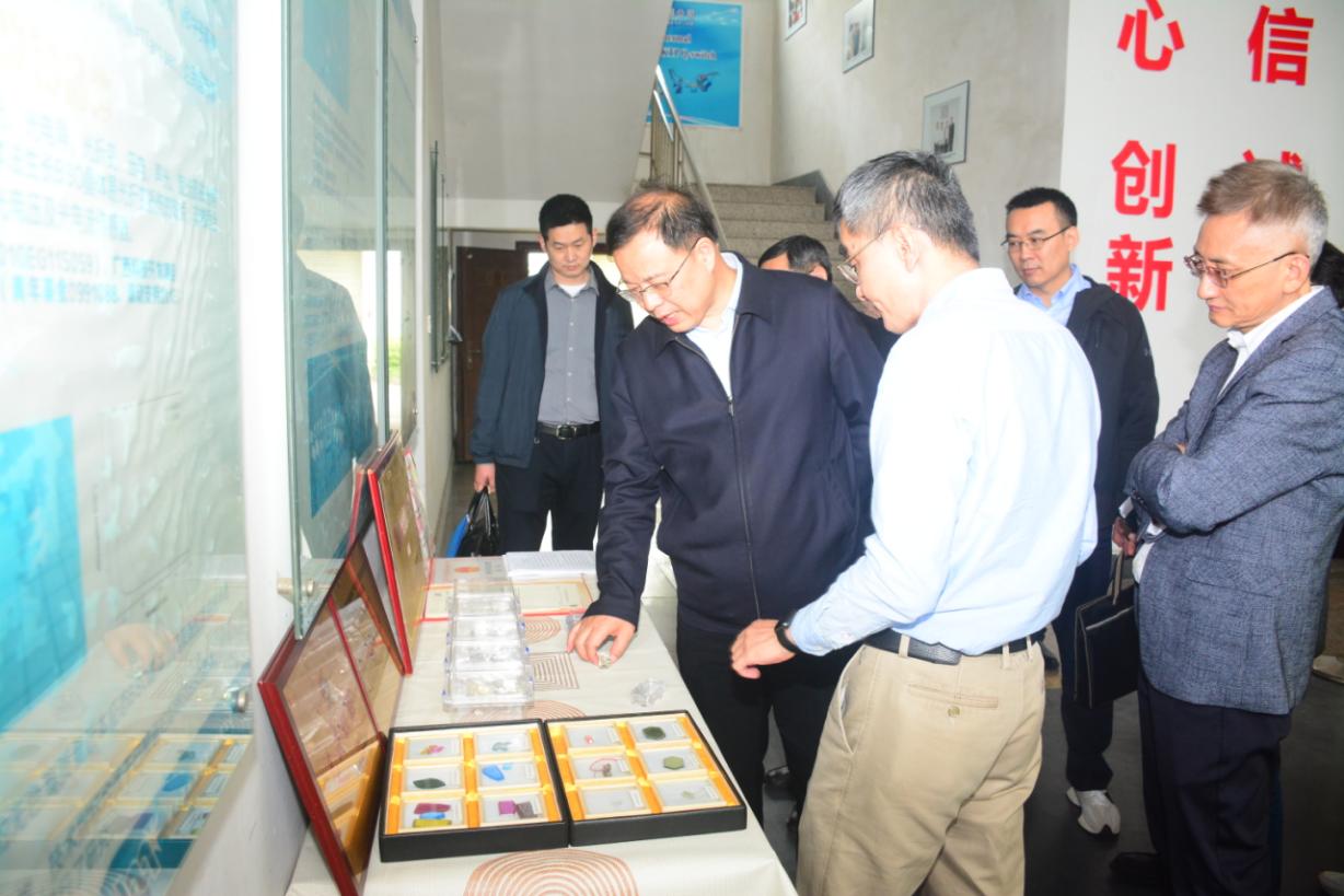 在晶體項目車間,奚正平書記重點了解取得科技獎勵、國家項目和高水平論文等科研成果情況,詢問量子信息用PPKTP工程化進展情況,并勉勵科研人員要繼續努力取得更高水平科研成果,積極組織研究啟動國家獎申報,持續加強與國內頂尖院士團隊合作,不斷滿足國家需要。奚正平書記還對晶體項目面臨的技術難題、高標準廠房建設等問題提出了針對性意見建議。