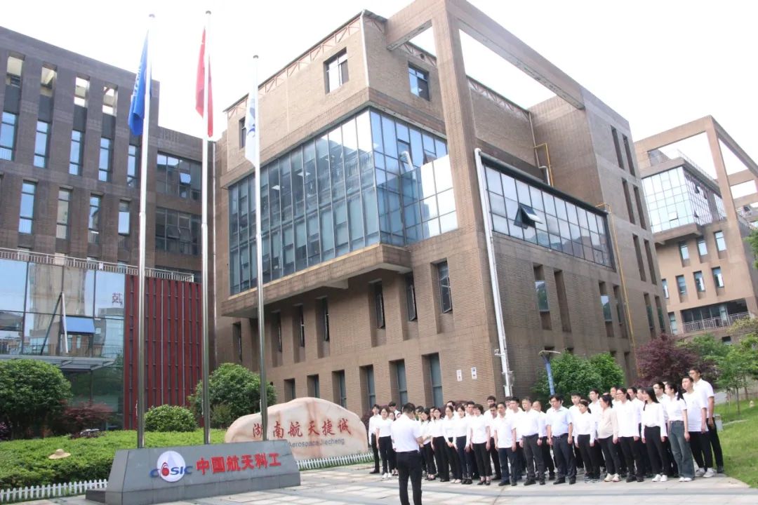 伴隨著雄壯的《義勇軍進(jìn)行曲》響起,鮮艷的五星紅旗冉冉升起。隨著激昂的航天科工之歌,集團(tuán)公司司旗迎風(fēng)飄揚(yáng)。在場全體人員肅然而立,行注目禮。