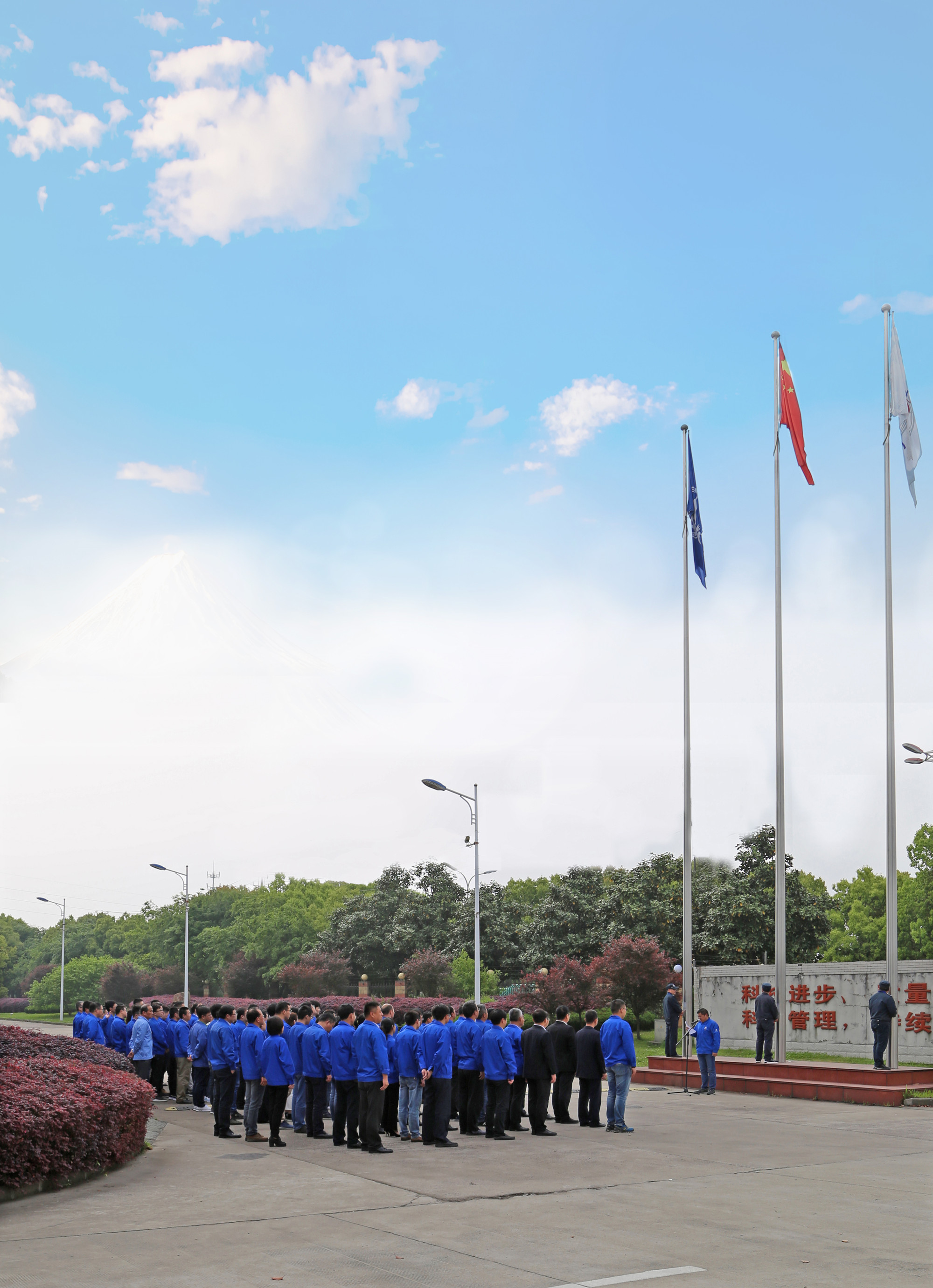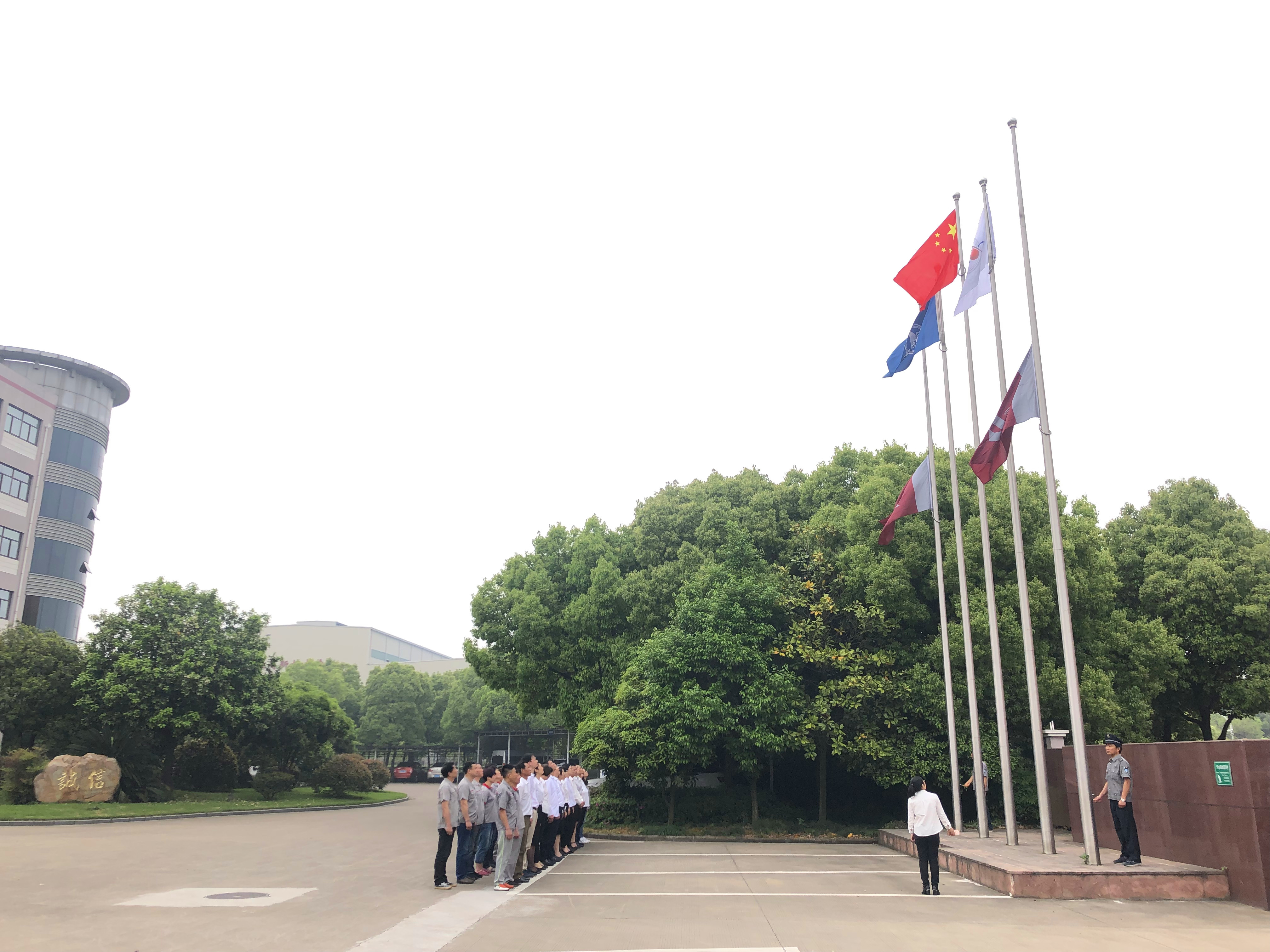 江蘇捷誠領導班子、各車間部室負責人、各黨支部書記、工會和團委代表、技術中心全體人員參加升旗儀式。當雄壯有力的《義勇軍進行曲》響徹整個廠區,全體人員行注目禮,全場彌漫著一種莊嚴肅穆的氣息,鮮艷的五星紅旗冉冉升起,激發了全體干部職工不斷向上的斗志,點燃了大家強烈的愛國熱情。升旗儀式上,公司黨委號召全廠職工把愛國之志轉化為報效祖國的實際行動,為航天事業發展而奮斗。