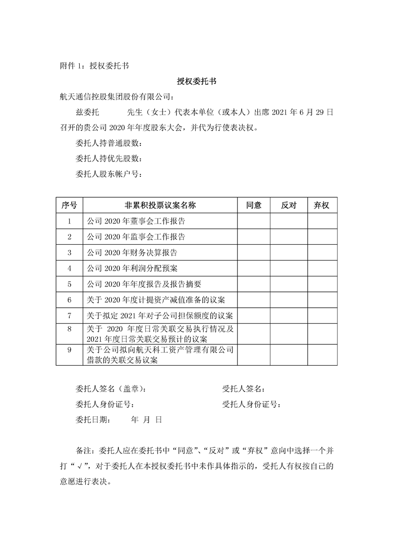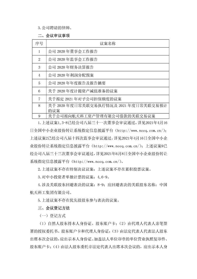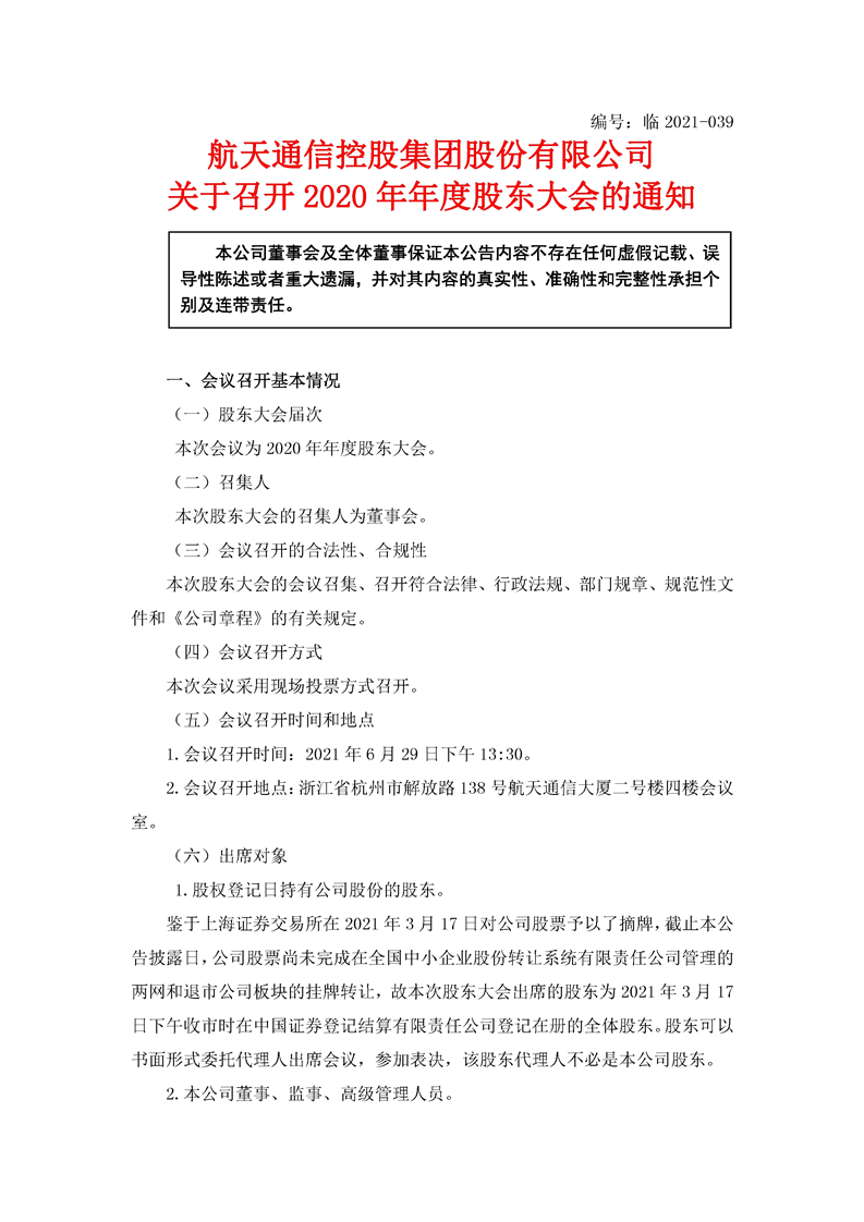 航天通信控股集團股份有限公司關于召開2020年年度股東大會的通知